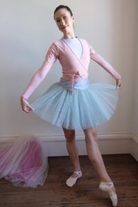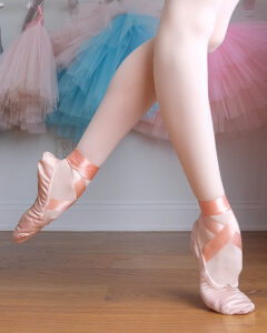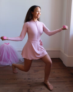Dress up your workout with Nutcracker-inspired activewear in sporty sugarplum pink or sparkling snowflake silver leotards and wraps! + don’t forget dreamy satin slippers!