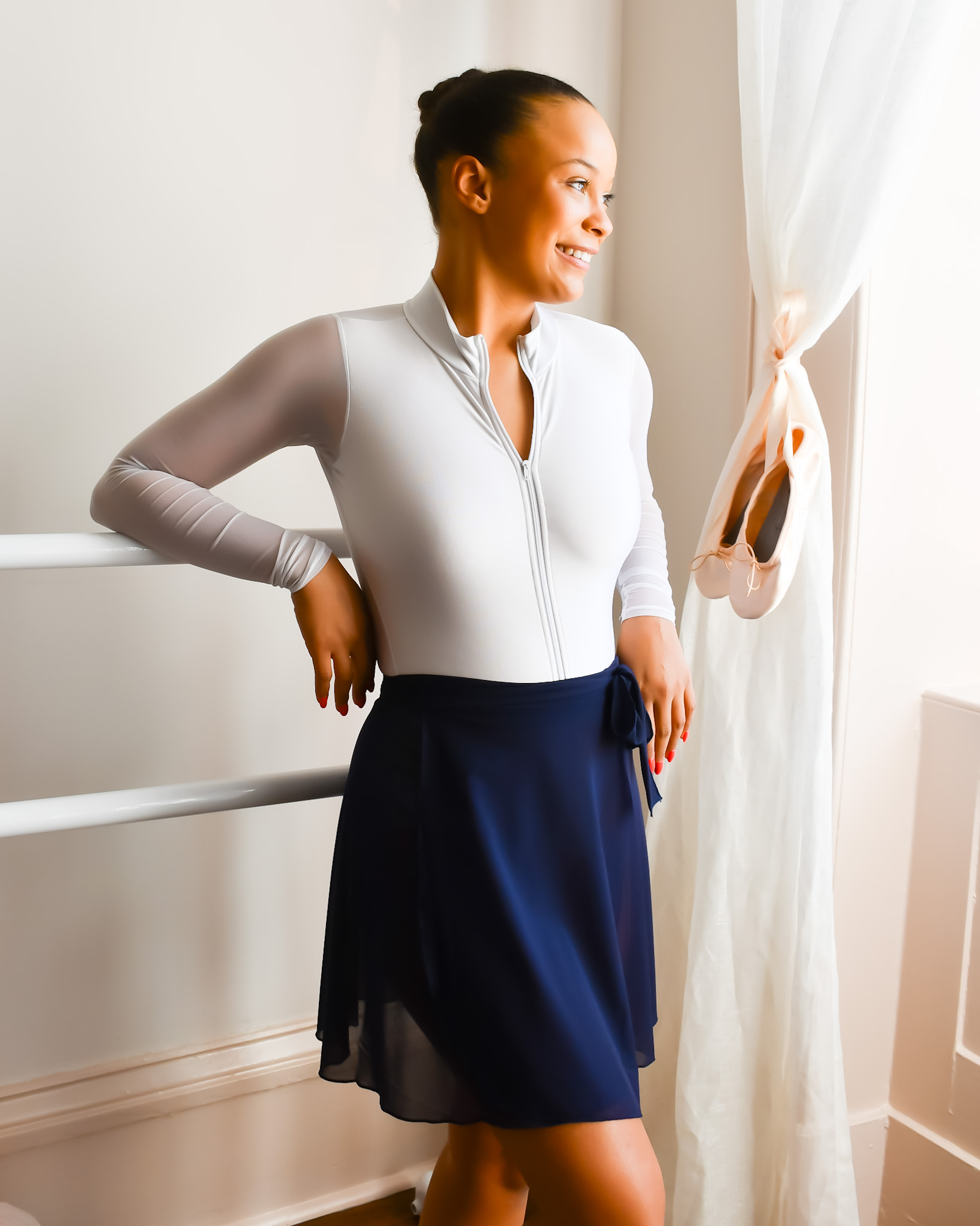 Our sophisticated update of our classic mesh mini skirt. The extended length adds a bit more coverage for extra comfort. Light and breezy with the right amount of stretch. Wear over any Ballet Beautiful leotard and tights for a chic ballerina workout style!